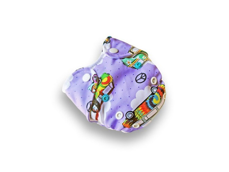 Na zewnątrz pieluszka uszyta jest z dzianiny PUL (poliester laminowany).